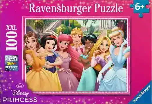 Disney Princess palapeli 100 palaa on XXL-paloilla oleva Ravensburgerin Disney-palapeli. Disney Princessat -palapelin palat ovat tavallista suuremmat, joten paloja on helppo käsitellä. Valmiin palapelin koko on 49,3 x 36,2 cm.