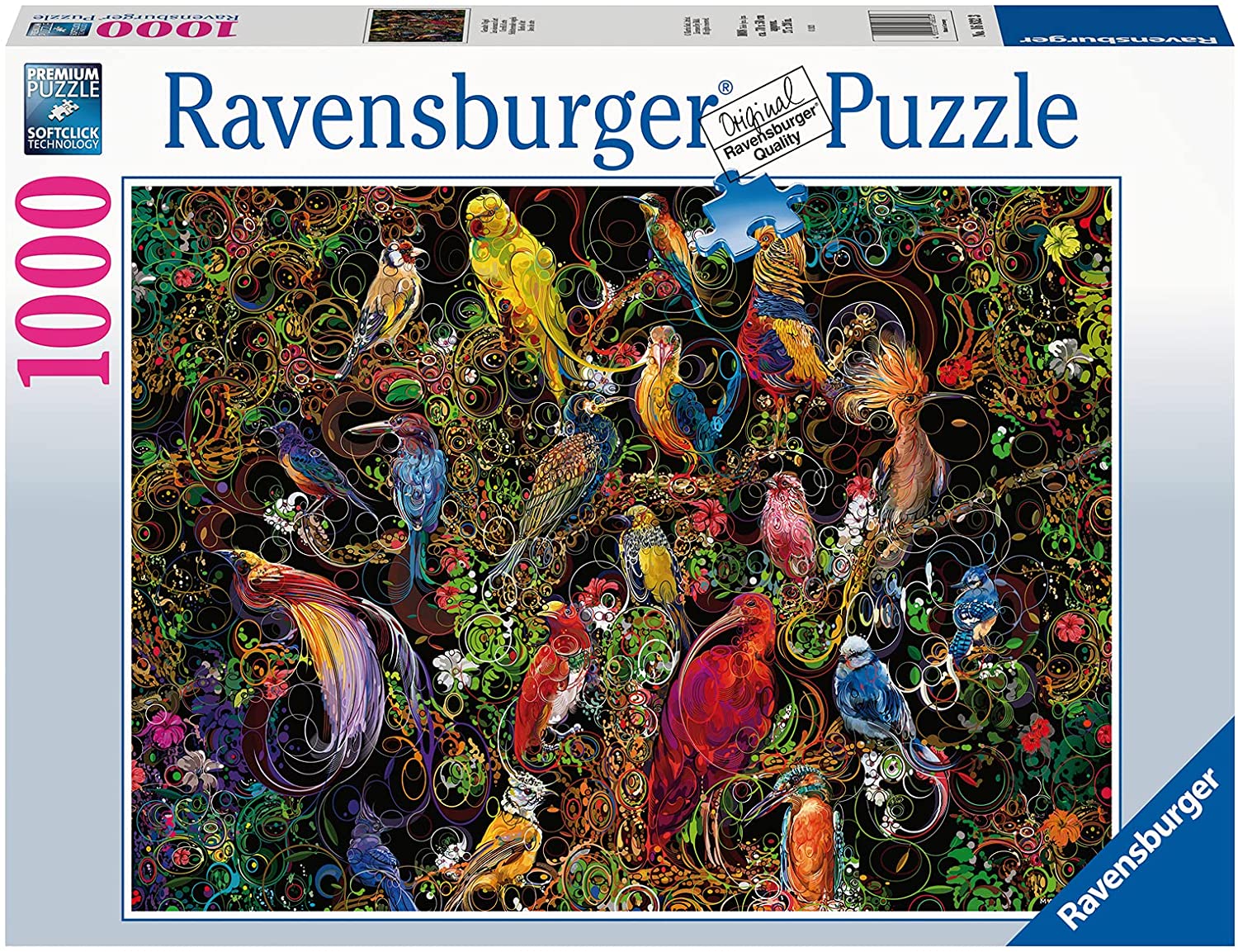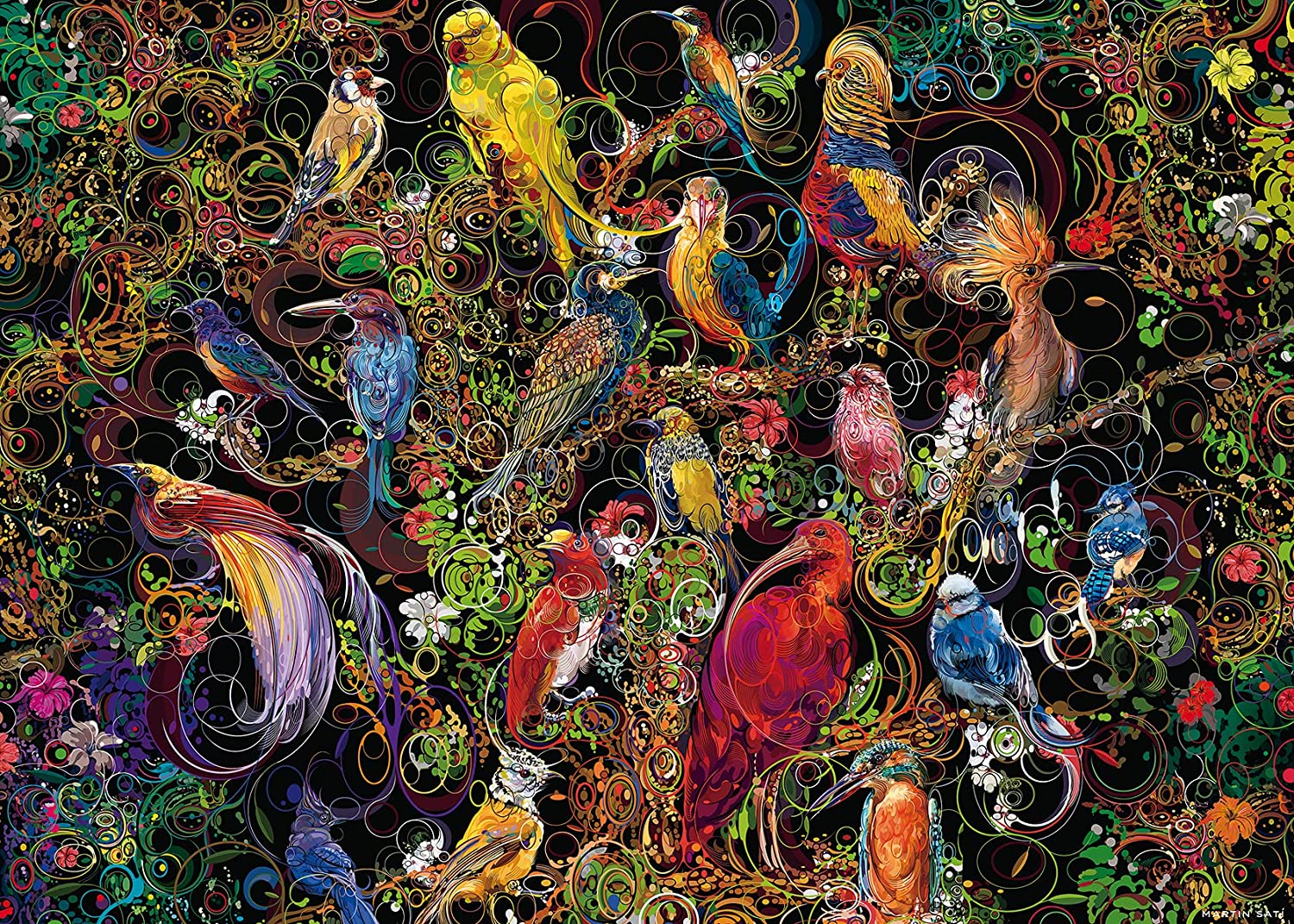 Värikkäät trooppiset linnut. 1000 palan palapeli.