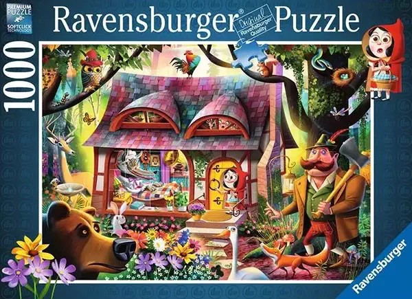Punahilkka-palapeli (Come In, Red Riding Hood): Hirvittävä vaara väijyy metsässä Dean MacAdamin kuvittaman palapelin tulkinnassa klassisesta Punahilkka-tarinasta, kun Iso paha susi sanoo: ”Tule sisään, Punahilkka!”
