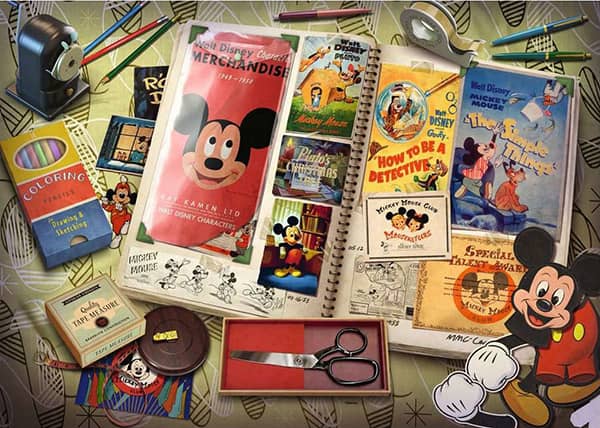 1950-luku oli aikaa, jolloin Mikki Hiiri inspiroi nuoria etsiviä ja hiirivalmistajia unelmoimaan isosti ja tutkimaan ympäröivää maailmaa. Palapelin reunaa koristavat askarteluesineet, mikä herättää 1950-luvulla kukoistaneen luovuuden ja mielikuvituksen henkiin.