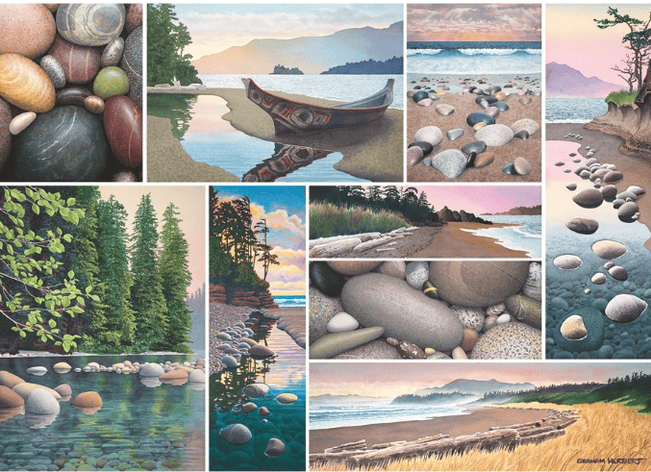 Kanadan mallistoon kuuluva palapeli Ravensburgerilta. Kollaasikuvissa vesi-, kivi- ja luontoaiheisia kuvia.