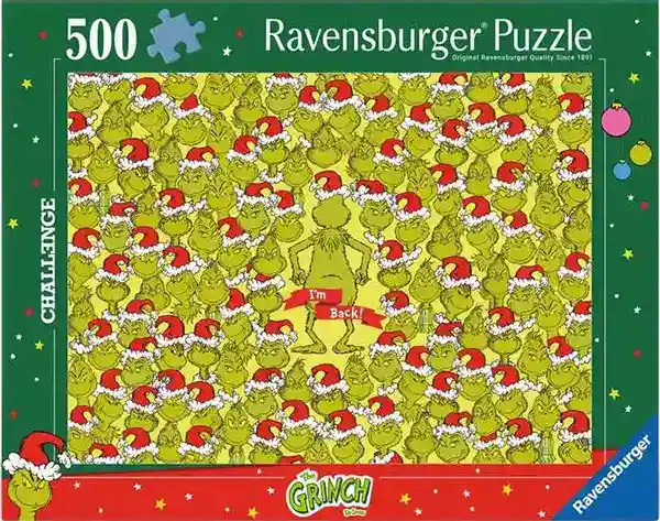 Challenge Grinch palapeli 500 palaa on Ravensburgerin Challenge-sarjan palapeli, jonka hahmona on Grinch. Grinch on tuttu elokuvista, joissa kyynisen röyhkeän tontun tehtävänä on varastaa joulu. Tässä palapelissä riittää haastetta.