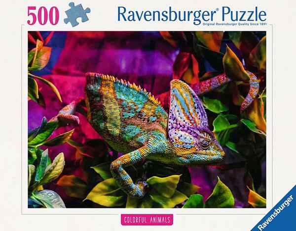 Chameleon palapeli 500 palaa on Ravensburgerin vuoden 2025 uutuus, jossa värikäs kameleontti. Tutustu myös muihin eläinaiheisiin palapeleihin.