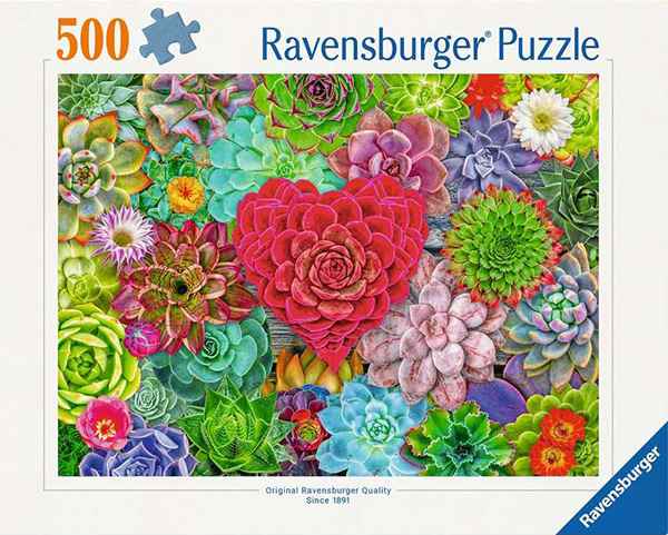 Succulent love palapeli 500 palaa on Ravensburgerin vuoden 2025 uutuus mehikasvipalapeli. Värikkäät mehikasvit helpottavat palapelin kokoamista. Aloita vaikka punaisesta sydämenmallisesta kasvista.