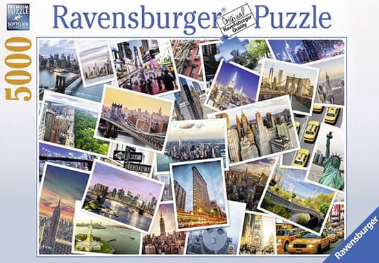 New York 5000 palan palapeli (New York – The City Never Sleeps) on Ravensburgerin palapeli, jonka kuvassa kollaasina kuvia New Yorkista. Matkusta Amerikkaan tämän palapelin mukana ja nauti maisemista ja nähtävyyksistä.