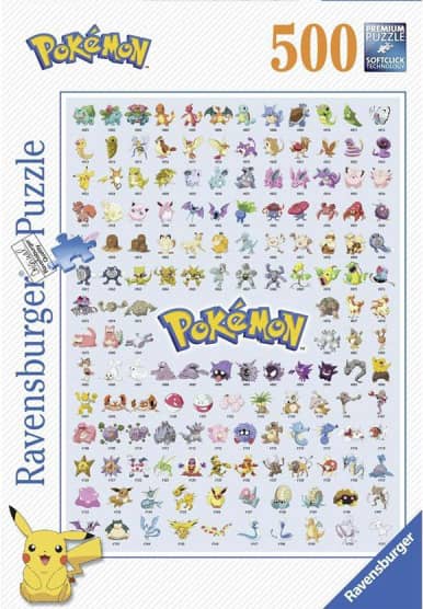 Pokemon The First 151 palapeli esittelee Pokemon-hahmot. Ravensburgerin palapeli on 500 palan palapeli.