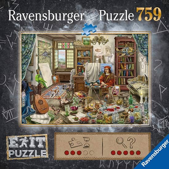 Exit Puzzle The Art Workshop palapeli (Taiteilijan työhuone) on Ravensburgerin 758 palan pakohuonepalapeli.