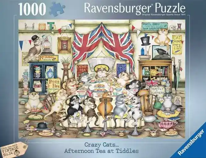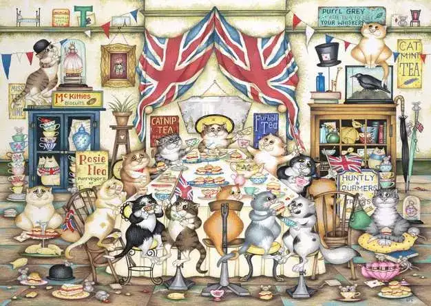 Afternoon Tea at Tiddles palapeli 1000 palaa on Crazy Cats -sarjan kissapalapeli. Kissat ovat kokoontuneet iltapäiväteelle.