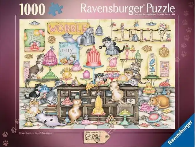 Crazy Cat’s Jelly Jamboree palapeli 1000 palaa kuuluu kuvittaja Linda Jane Smith’n Crazy cats -kissapalapelien sarjaan.