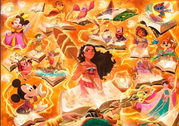 DLC Glimmers of the Realm Amber palapeli 1000 palaa on Ravensburgerin syksyn 2025 uutuus Disney-palapeli. Kuvat ovat Disney Lorcana Trading Card Game -pelistä.