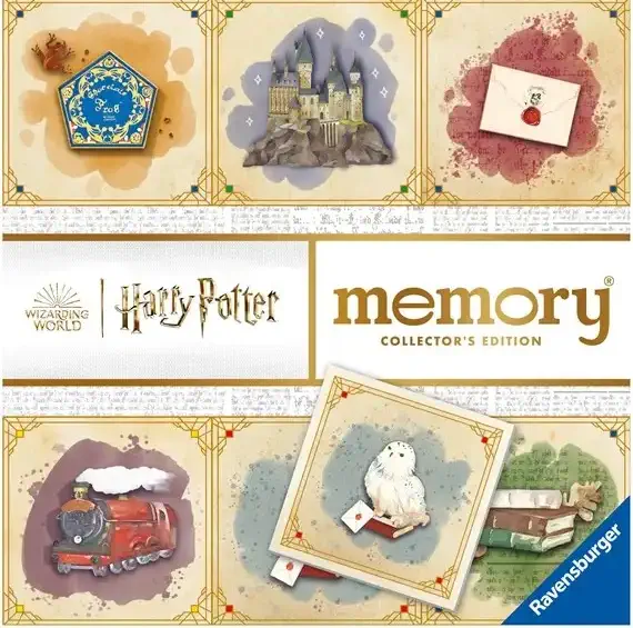 Harry Potter muistipeli (Ravensburger Harry Potter Collector’s Memory Game), jonka korteissa on tuttuja Harry Potter -hahmoja ja aiheita. Peliä voi pelata myös hämärässä, sillä kortit hohtavat pimeässä.