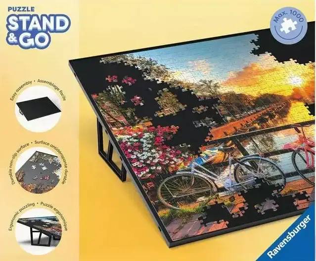 Kokoa palapeli mukavassa ergonomisessa kulmassa tai pidä kokoamisalusta vaakasuorassa, ihan miten sinusta tuntuu parhaalta. Kätevä koottava ja helposti siirrettävä palapeliteline tekee palapelin kokoamisesta entistä rentouttavamman kokemuksen. Telineen ergonominen kulma vähentää niskajännitystä.