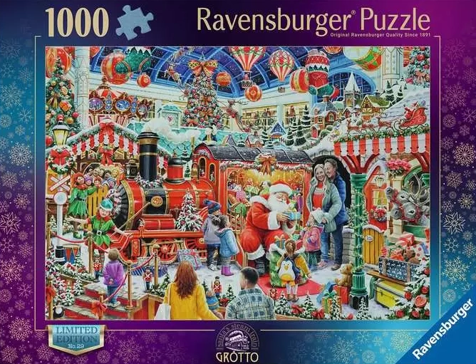 Ravensburger Santa’s steam train palapeli 1000 palaa on Ravensburgerin uusi joulupalapeli. 1000 palan joulupalapelin on kuvittanut Roy Trower.
