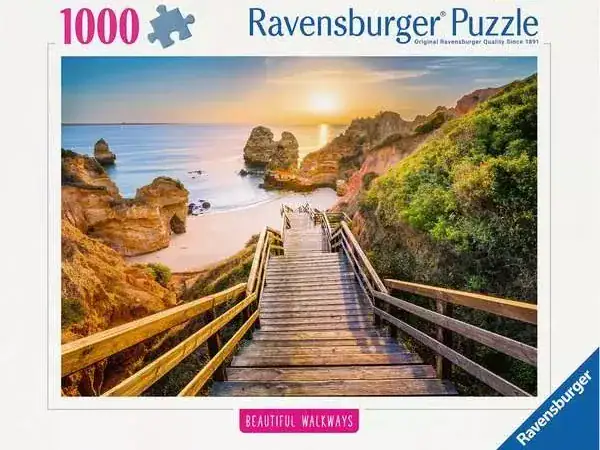Stairway to Camilo Beach Portugal palapeli 1000 palaa on Ravensburgerin Beautiful Walkways -sarjaa. Palapelin valokuvan on ottanut valokuvaaja Susanne Kremer Algarven uimarannalla.
