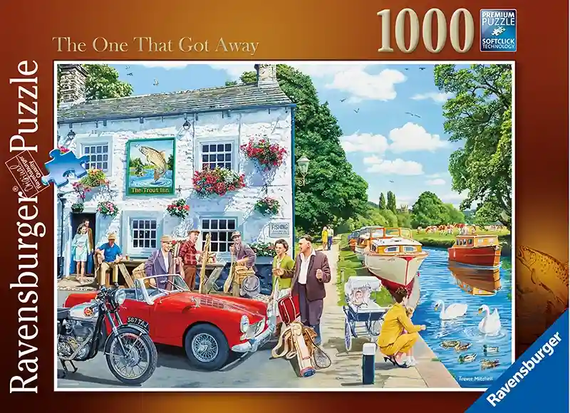 The One that got away palapeli 1000 palaa on Trevor Mitchellin kuvittama nostalgia-aiheinen palapeli. Tämä 1000 palan palapeli vie menneisiin vuosikymmeniin. Päivä on poutainen ja ihmiset nauttivat. Äiti ja lapsi ruokkii sorsia ja joutsenia. Aikuiset ihastelevat punaista urheiluautoa pubin ulkopuolella.