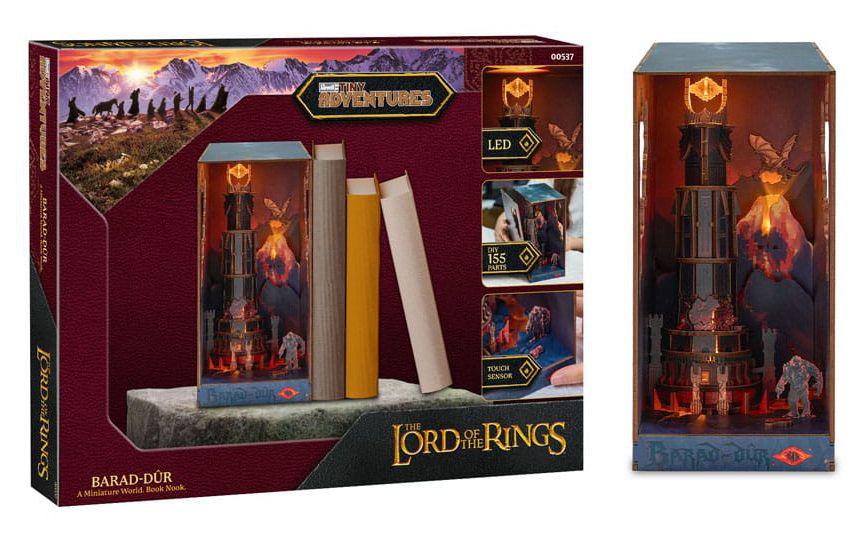 Book Nook Taru Sormusten Herrasta Barad-Dûr Tiny Adventures 3D-pienoismaailma, jossa on 155 osaa ja LED-valot.