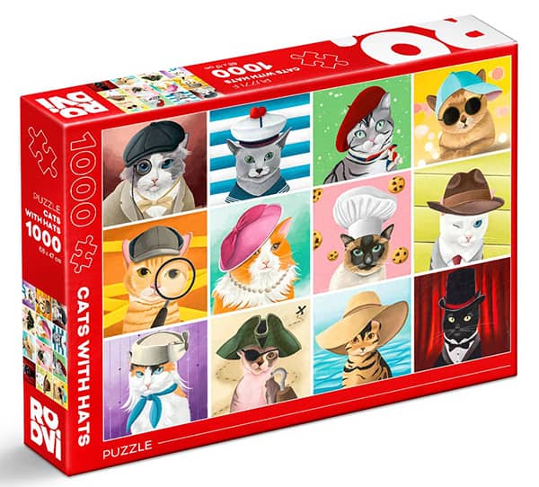 Kissat ja hatut palapeli on Roovin 1000 palan palapeli.