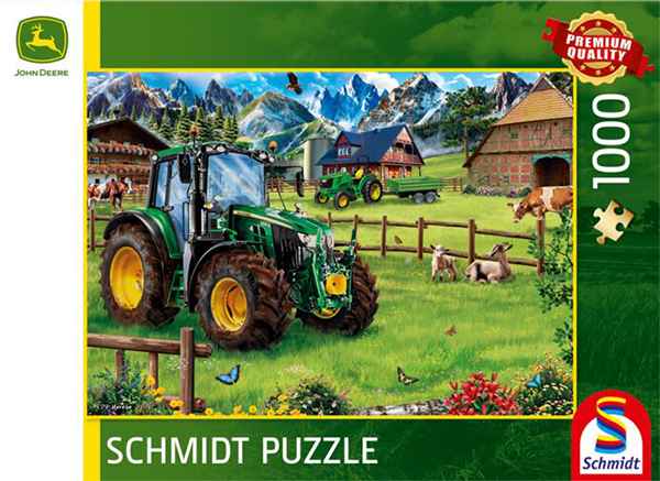 John Deere 6120M palapeli on saksalaisen Schmidtin 1000 palan traktoripalapeli Alpine pasture with tractor: John Deere 6120M.