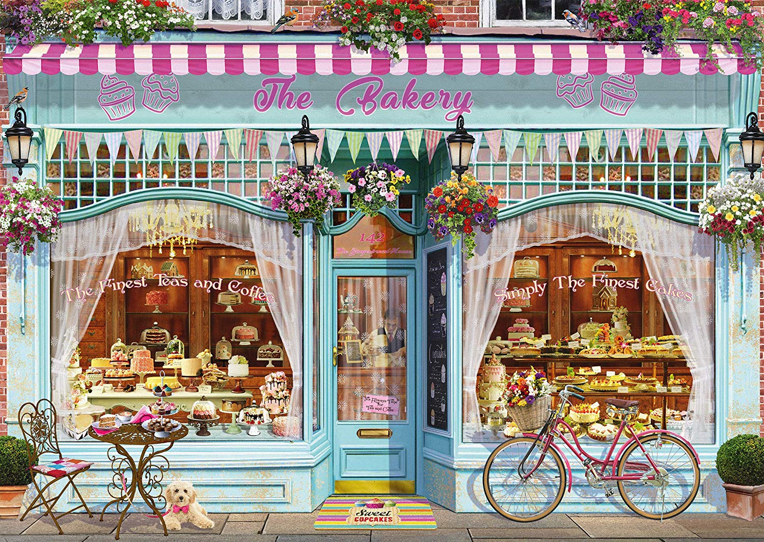 Garry Waltonin kuvittama leipomo-myymälä-aiheinen palapeli, jossa myymälän ikkunoita kehystää pitsiverhot. Polkupyörä nojaa ikkunaan ja toisen ikkunan edessä on romanttinen pöytäryhmä.