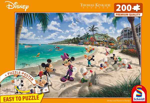 Mickey and Minnie in Florida palapeli 200 palaa on Thomas Kinkade Studiosin kuvittama Disney-palapeli. Kuvassa Mikki Hiiri ja Minni Hiiri nauttivat Floridan hiekkarannoista. Palapelissä on reilun kokoiset palat, joten paloja on helppo käsitellä. Helppo palapeli sopii myös aikuisille ja ikääntyville. Kaikki helpot palapelit sopivat sekä lasten että aikuisten iloksi.