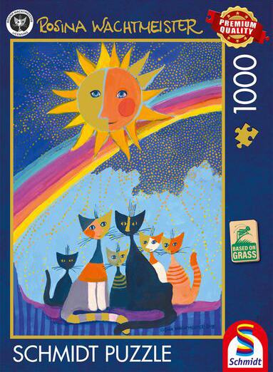 Rosina Wachtmeister tunnetaan lempinimellä ”kissataiteilija”. Hän kuvittaa taidepalapelejä, joiden aiheena on värikkäät kissa tai kissat. Tämä 1000 palan kissapalapeli on värialueiltaan selkeä, mikä helppottaa palapelin kokoamista.