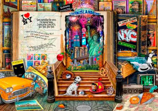 Schmidt Memories of  New York palapeli 1000 palaa on Aimee Stewartin kuvittama New York -palapeli. Aimee Stewartin kuvittamaan matkailuaiheiseen sarjaan kuuluu myös Lontoo, Venetsia ja Pariisi.