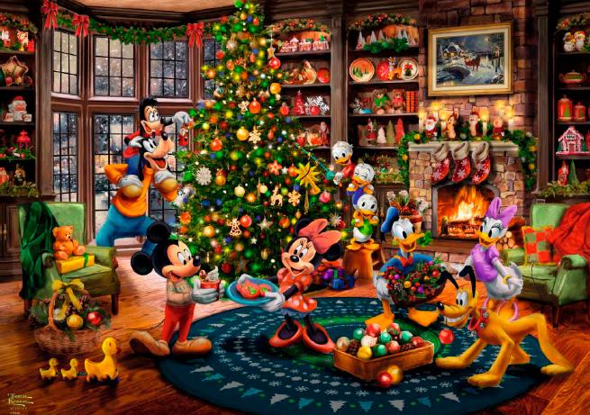 Schmidt Mickey & Minnie Trimming the Tree palapeli 1000 palaa on on Thomas Kinkade Studios’n kuvittama Disney-palapeli, jossa Mikki ja Minnie Hiiri ystävineen koristelevat joulukuusta.