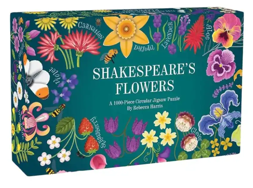 Shakespeare’s Flowers palapeli 1000 palaa on Rebecca Harrisin kuvittama pyöreä palapeli. Shakespearen kukkapalapeli runollisesti kukkien, kasvien ja eläinten kera.
