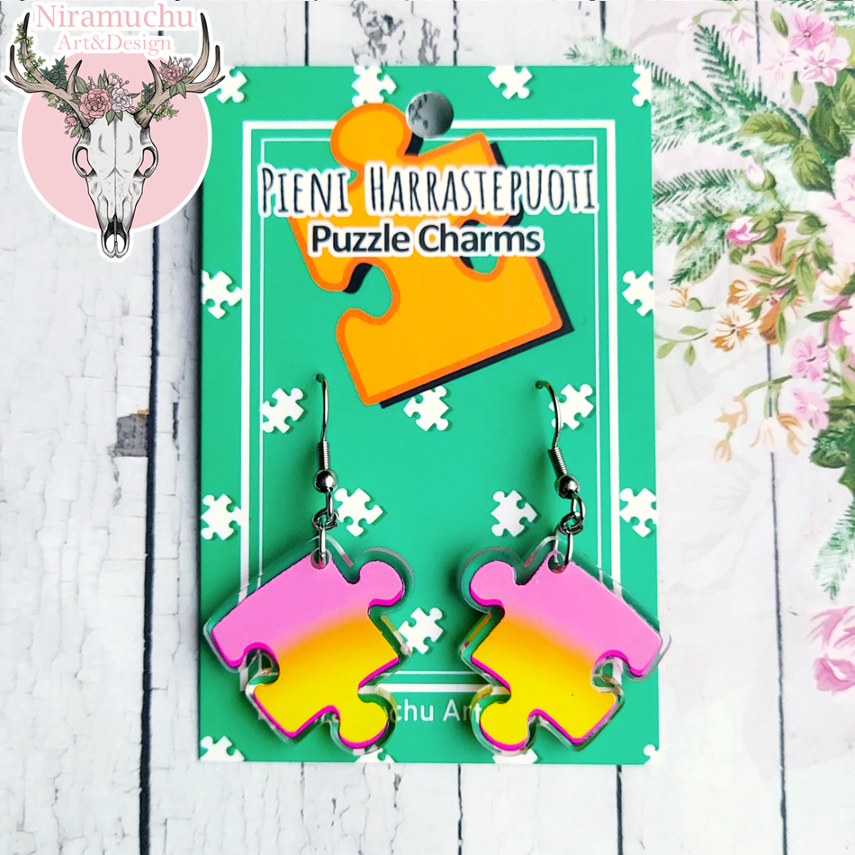 Sunset Puzzle -korvakorut on Niramuchu Art & Designin ja Pienen Harrastepuodin yhteistyönä suunnittelemat korvikset, jotka kuuluvat Puzzle Charms -mallistoon.