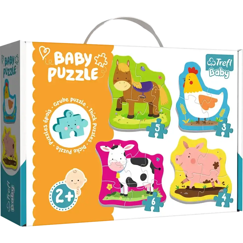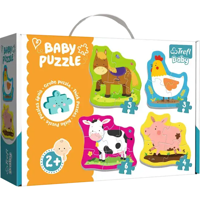 Nämä lasten ensipalapelit ovat suuria, paksusta pahvista tehtyjä palapelejä, jotka on suunniteltu pienimmille lapsille. Hevonen, kana, lehmä ja possu ovat monelle lapselle tuttuja eläimiä. Lisäksi eloisat värit, isot palat ja kiinnostavat muodot kannustavat lasta leikkimään. Kauniit kuvitukset herättävät lasten huomion ja tekevät leikistä entistäkin mukavampaa. Maatilan eläimiä kuvaavat palapelit kannustavat tutkimaan paloja.