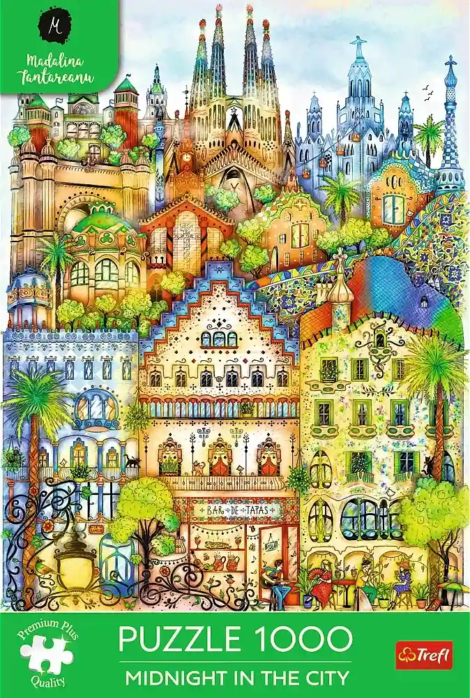Midnight in Barcelona palapeli 1000 palaa on värikäs kaupunkikuva Barcelonasta.