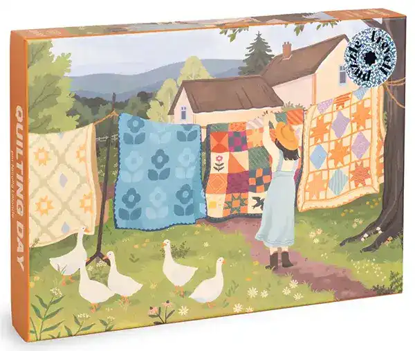 Quilting Day palapeli on ranskalaisen Trevellen 500 palan palapeli. Tilkkutäkit ovat päässeet ulos tuulettumaan, ankat hyörivät nurmella. On ihana kesäpäivä.