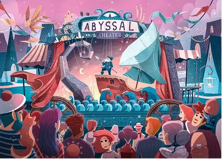 Trevell Abyssal Theater on 500 palan palapeli, joka vie kokoajansa vedenalaiseen teatteriin – paikkaan, jossa meren syvyydet, tarinat ja mielikuvitus kohtaavat. Kuvitus on Eor Glas Studion käsialaa ja täynnä yksityiskohtia, värejä ja lempeää tarinallisuutta, josta Trevell tunnetaan.
