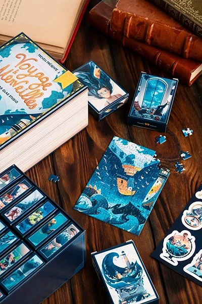 Tämä Voyage & Merveilles -laatikkosetin jokaisessa minipalapelissä on 99 palaa.
