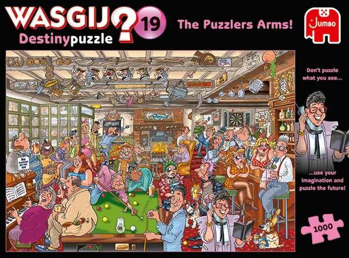 Wasgij Destiny 19 The Puzzlers Arms -palapeli on ratkaisultaan mysteeri, jossa kokoat tulevaisuuden näkymää. Käytä mielikuvitustasi tämän todellisen aivopähkinän kanssa.