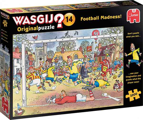 Wasgij Original 14 Football Madness palapeli 1000 palaa on alankomaalaisen Jumbon valmistama mysteeripalapeli. Wasgissa pääset mukaan jalkapallomatsiin, ja mitä siellä oikeasti tapahtuukaan. Se selviää ratkaisemalla peli.