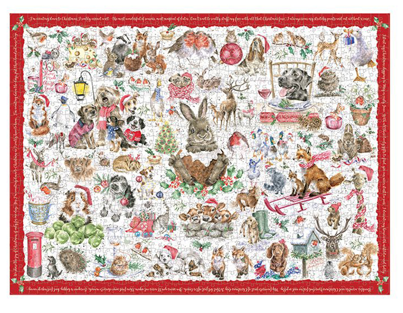 Wrendale Country Set Christmas palapeli on Wrendale Designs -sarjan tunnelmallinen 1000 palan joulupalapeli, joka ilahduttaa eläinten ystäviä ja joulun rakastajia. Taiteilija Hannah Dalen akvarellityyliset kuvitukset esittävät yli 100 eläinhahmoa. Mukana on kissoja, koiria, pöllöjä, kettuja, pupuja, linnut, mäyrä, marsu ja monia muita metsän ja kodin asukkeja jouluisissa asetelmissa.